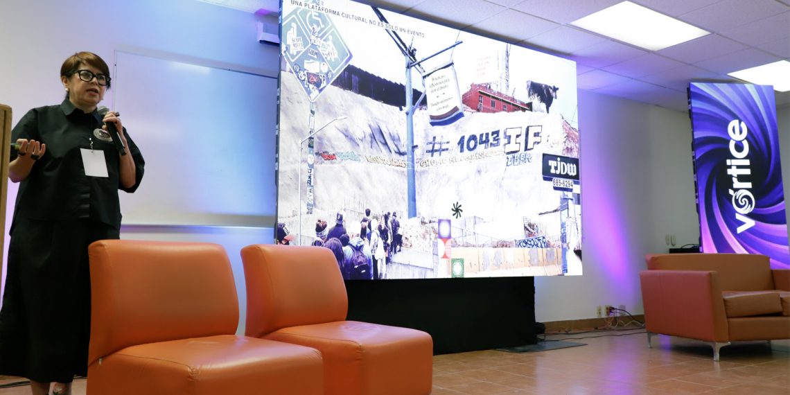 La ponente explicó que esta conferencia surge a partir de una experiencia previa en un ciclo de charlas en San Diego, donde enfrentaron el reto de dialogar con una audiencia enfocada en tecnología desde la perspectiva de un estudio de diseño ubicado en Tijuana.