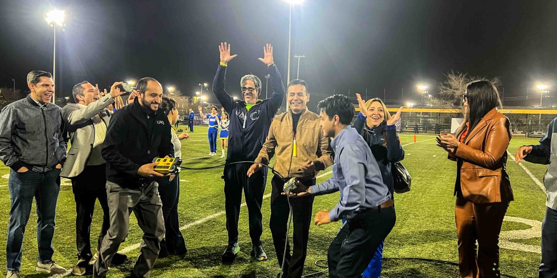 Bajo un cielo que parecía guardar silencio para presenciar la historia, la Universidad Autónoma de Ciudad Juárez (UACJ) encendió esta noche las luces LED de su nuevo campo sintético de futbol americano, en el Complejo Deportivo Universitario. Con un destello que atravesó la oscuridad, comenzó una etapa que promete más horas de entrenamiento, más competencias y más sueños que corren detrás de un balón, bajo un mismo espíritu universitario.
