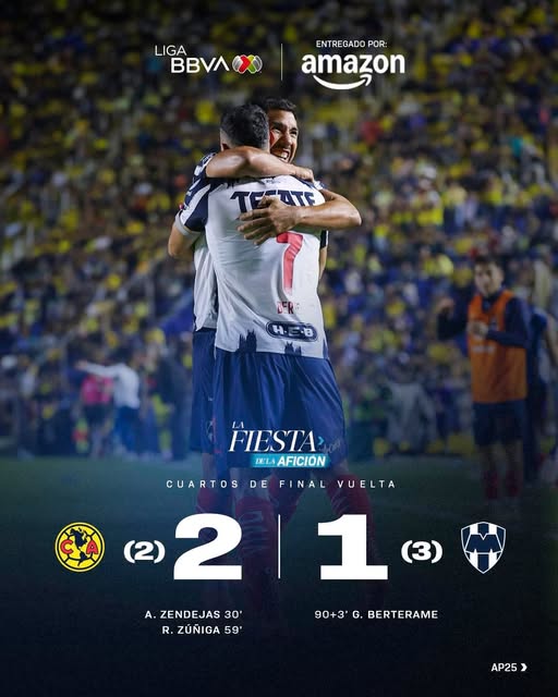 Con gol de último minuto de Germán Berterame, Rayados avanzó a Semifinales del Apertura 2025 tras eliminar al América en Cuartos de Final. A pesar de que las Águilas habían logrado empatar el marcador global con los goles de Alejandro Zendejas y José Raúl Zúñiga, un tanto tardío de Monterrey apagó la fiesta en el Estadio Ciudad de los Deportes y dejó a los comandados por André Jardine fuera de la Liguilla.